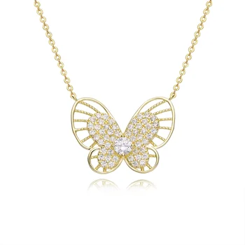 Butterfly Pendant 18K Hollowed Gold Jewelry Floral Silk Gold Diamond Chain Ladies' Gift Necklace for Banquets Featuring Zircon
